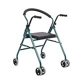 - Mit einem starken und stabilen Stahlrahmen bietet dieser 4-Rollen-Rollator für Erwachsene Stärke, Unterstützung, Haltbarkeit und Komfort. Der Rollator mit Sitz und Rollen wird komplett mit einer gepolsterten Rückenlehne geliefert, die durch Hoch- oder Abklappen entfernt werden kann. Der Rollator für drinnen und draußen verfügt auch über einen bequemen 30,5 cm quadratischen Sitz, eine praktische Tasche für persönliche Gegenstände und 15,2 cm große Rollen. Die höhenverstellbaren Rollatorgriffe können je nach Körpergröße nach oben oder unten bewegt werden und sind ergonomisch, um übermäßige Belastung zu reduzieren