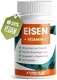 Eisentabletten hochdosiert 180x mit 40 mg Eisen + Vitamin C (40 mg) aus Hagebutten - EISEN + Vitamin C FORTE mit bioverfügbarem Eisen aus hochwertigem Eisenbisglycinat - laborgeprüft mit Zertifikat