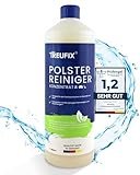 - Einfache Dosierung & Anwendung: Unseren Polsterreiniger Sofa je nach Grad der Verschmutzung in einem Eimer oder einer Sprühflasche dosieren (1:20 bei leichten, 1:10 bei mittleren und 1:5 bis 1:1 bei groben Verschmutzungen). Anschließend mit einem Schwamm oder Tuch in kreisenden Bewegungen einarbeiten. Danach 2-5 Minuten einwirken lassen. Zuletzt zusammen mit den gelösten Flecken abwischen. Alternativ mit einem Saugwischer oder Nasssauger abtragen. Die 750ml reichen für 150-200m² Fläche aus.