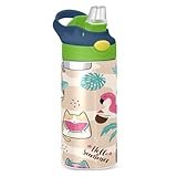Mexpekil Süße Cartoon-Katzen-isolierte Wasserflasche mit Strohhalm-Deckel, Edelstahl-Thermosflasche, Vakuumflasche, auslaufsicher, Reise-Sport-Trinkflaschen zum Laufen, Radfahren, Wandern, 600 ml